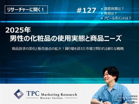 この程、TPCマーケティングリサーチ株式会社(本社=大阪市西区、代表取締役社長=松本竜馬)は、『2025年 男性の化粧品の使用実態と商品ニーズ』について、弊社リサーチャーの北口貴一のインタビュー記事を2025年6月27日に公開したことをお知らせいたします。