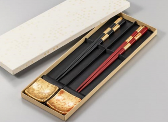 金箔の高級感溢れる夫婦箸のセットは結婚祝いや結婚記念日のプレゼントに最適です。
