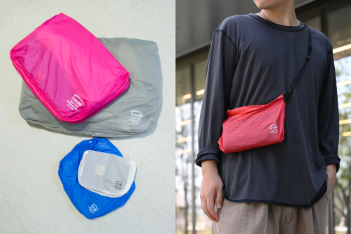 "究極の軽さ"を意味するバッグは、オーガナイザーAIRと同じ生地を使用し、薄さと丈夫さを両立しながら極限まで軽さを追求したショルダーバッグ。色によってはほんのり透け感があるのが特徴です。シンプルでミニマムなデザインでありながら、荷物がとりだしやすいように取り出し口を大きくするなど、使い勝手にこだわり抜きました。