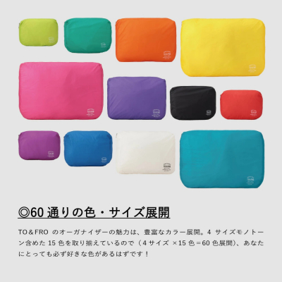 オーガナイザーに使用しているオリジナル生地を2/3まで軽量化した「Humming bird AIR(ハミングバード エア)」を採用。風になびくほどに軽量な生地で、ほんのり中身が透けるほどの薄さです。カラーバリエーションが豊富で15色を展開しています。