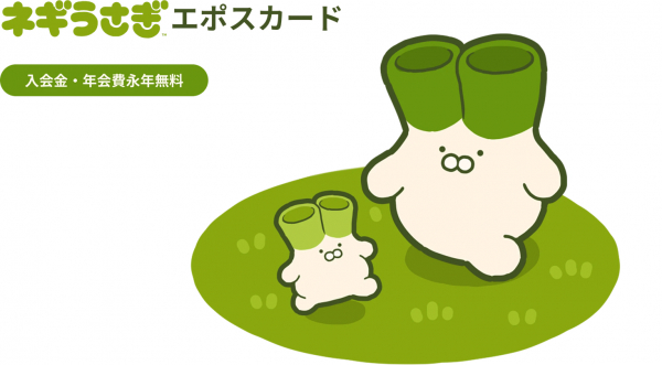 ネギうさぎはSNS総フォロワー数148万人のクリエイター「うめぼしちゃん」が描く人気キャラクター。今回のエポスカードご入会・お切替え後に条件達成で「ネギうさぎエポスオリジナルマスコット(非売品)」をプレゼントしています。