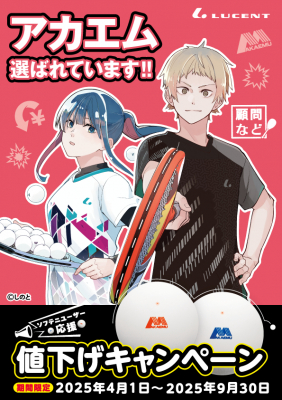 株式会社ルーセント(本社:千葉県柏市、代表取締役社長:中野吉広)は、ソフトテニス公認球『アカエムボール』ならびに練習球『アカエムプラクティス』の価格を大幅に下げて販売するキャンペーン「ソフテニユーザー応援 値下げキャンペーン」を、2025年4月1日(火)から2025年9月30日(火)まで実施しています。
