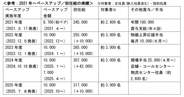 1回目のベースアップによって大学卒の初任給※は現行より1万円上乗せの317,000円に、