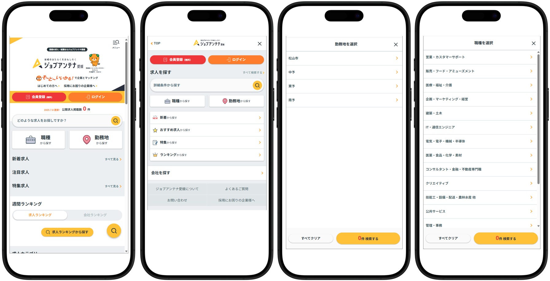 ■「ジョブアンテナ愛媛」の画面イメージ ※画像は開発中のものです