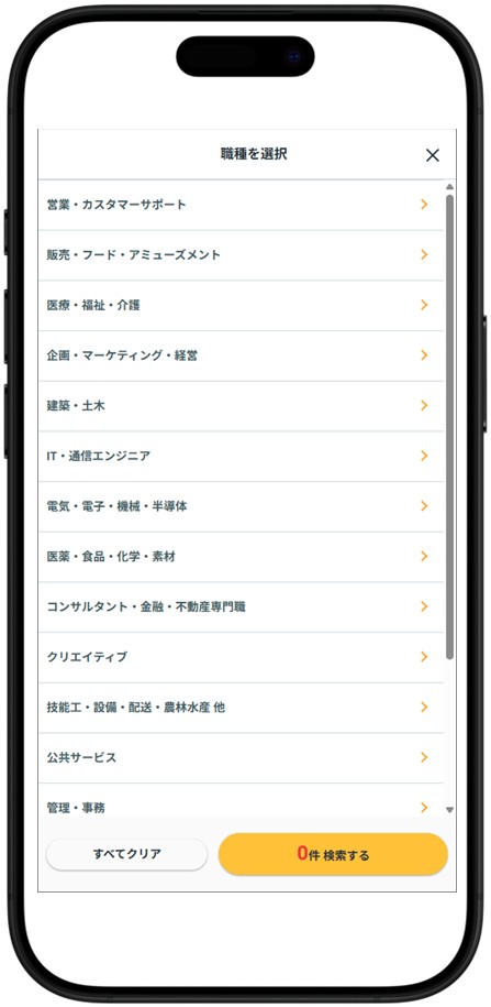 ジョブアンテナの会員属性は20~30代が最も多いことから、スマートフォンでの使用に最適化されたカジュアルなデザインを採用しています。画面では直感的な操作が可能なため、空き時間に求人を検索したり、プロフィールを充実させたりすることも可能です。