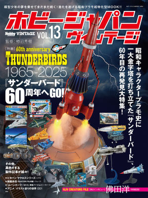 キャラクター・プラモの進化を、当時の周辺状況とともに、徹底的に再検証する模型ムック「ホビージャパン ヴィンテージ」。「Vol.13」では、放映60周年となる『サンダーバード』を特集!「ベルファイン」から新規金型で発売されるキットを筆頭に、「イマイ」「アオシマ」「バンダイ」の旧キットの作例を掲載し、サンダーバード・プラモの歴史を回顧。とくに、60年代初回日本放映時の熱狂的ブームを、当時の関連商品、時代背景とともに分析します。