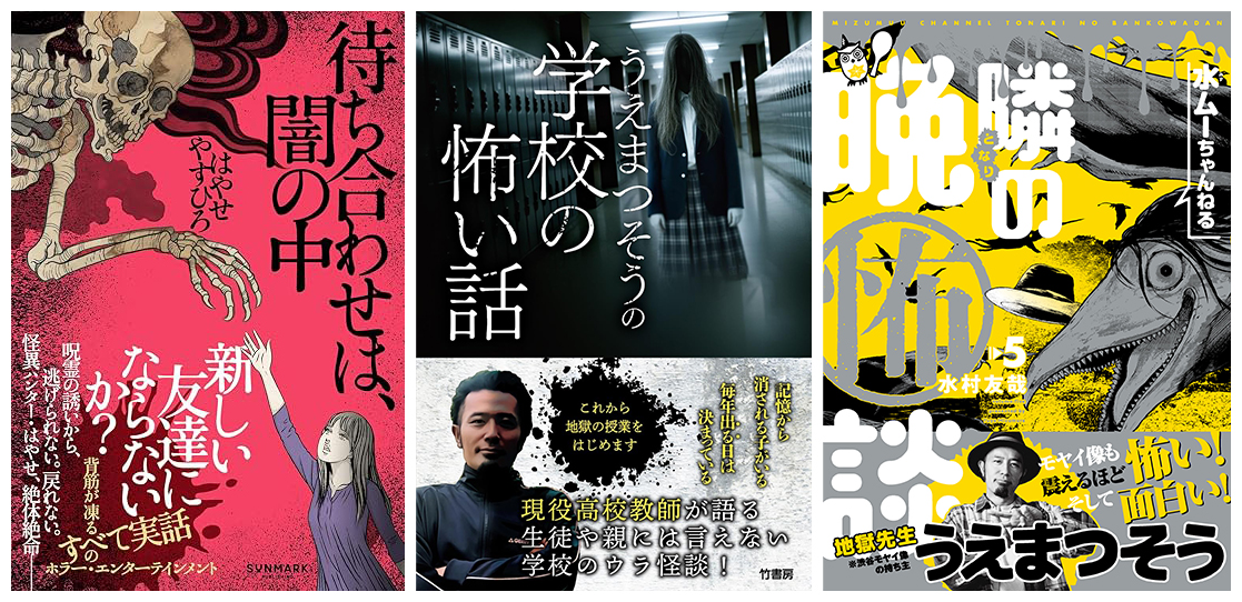 出演するのは怪談界で人気を誇る、はやせやすひろ氏、うえまつそう氏、そして怪談漫画家・水村友哉氏の3名。それぞれの新刊紹介に加え、背筋も凍る怪談話を披露いただきます。後半には3者によるクロストークも予定。ここでしか聞けない裏話や制作秘話が飛び出すかもしれません。