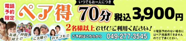 2名以上での電話予約で70分税込み3,900円!