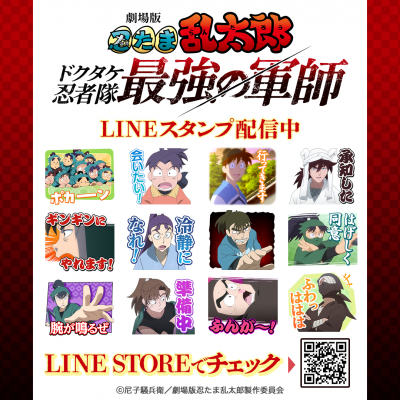 劇場版「忍たま乱太郎 ドクタケ忍者隊最強の軍師」初となるLINEスタンプがインクルーズより配信開始!是非、LINEスタンプでも劇場版「忍たま乱太郎 ドクタケ忍者隊最強の軍師」の世界観をお楽しみください。