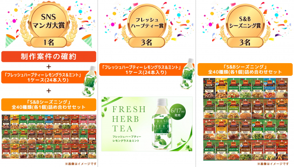 賞品:大賞(最優秀作品賞)にエスビー食品株式会社との制作案件確約、および商品詰め合わせをプレゼント