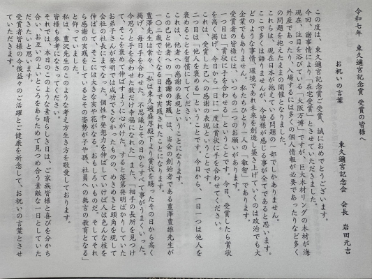 6月12日に韓国のソウルから戻って、帰宅してみると、自宅に東久邇宮記念賞受賞の知らせが届いていました。