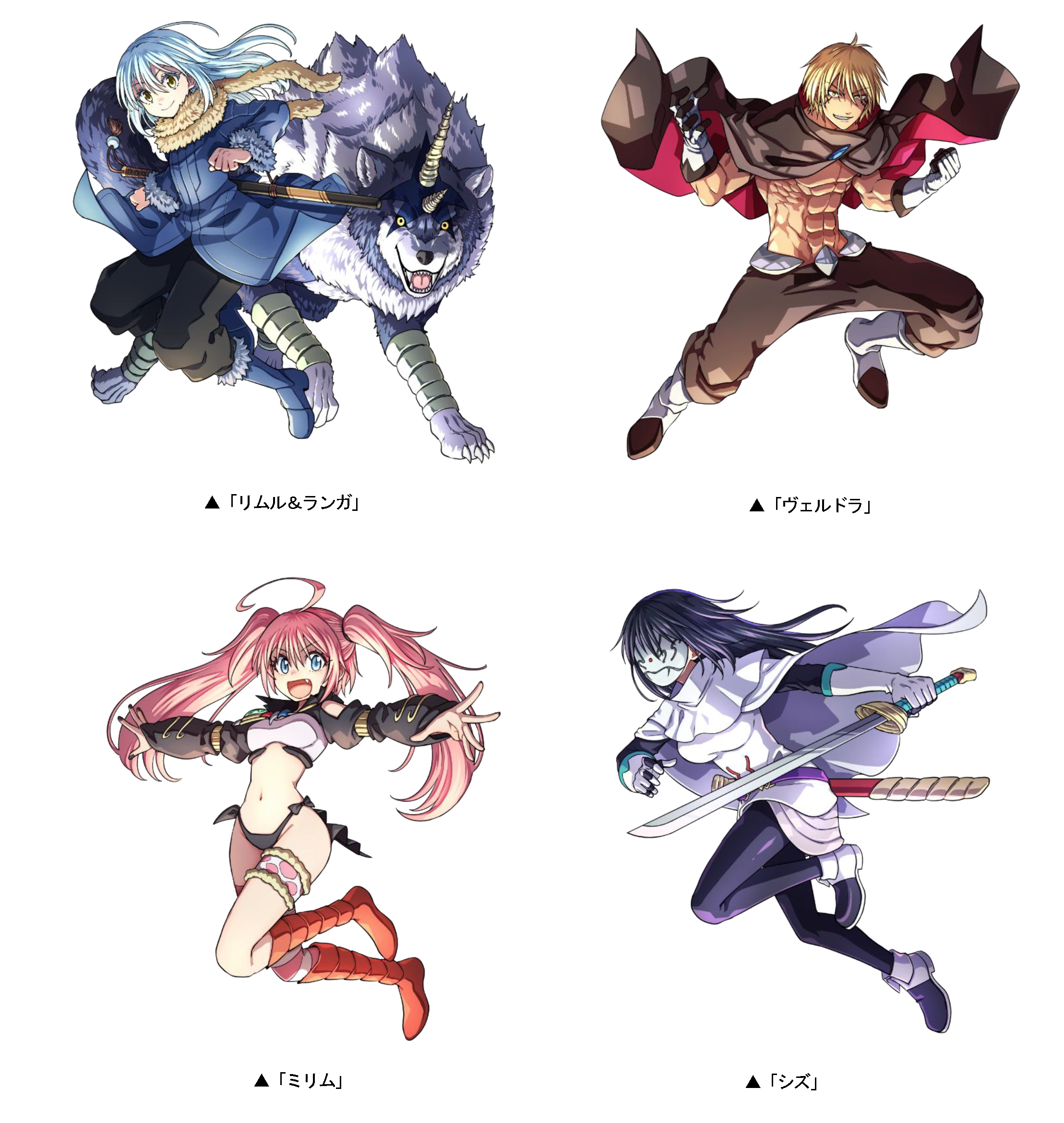 「リムル&ランガ」「ヴェルドラ」「ミリム」「シズ」をはじめ、TVアニメ『転生したらスライムだった件』の人気キャラたちが登場!その他の登場キャラクターやイベント情報については特設サイトをご確認ください。