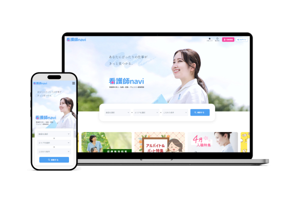 地域や雇用形態といった汎用項目のほか、職種に特化した施設・勤務形態・こだわり条件などを設けた看護師求人サイト。清潔感あるカラーリングで、求職者に訴求します。