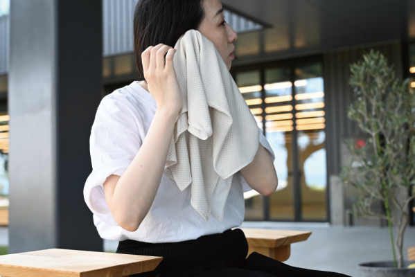 「お風呂タオル-コンパクト- COOL」の誕生背景には、2020年のコロナ禍に開発されたTO&FROの「究極の夏マスク」があります。どんなに暑くてもマスクを着けなければならなかった状況下で、「少しでも快適な素材を」という思いから、ひんやりと涼しく蒸れにくい高機能生地を開発しました。今回のタオルには、その冷感素材を応用し、毎日使いやすいタオルに涼しさをプラスしてご提案いたします。