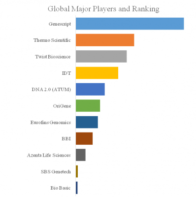 LP Informationのトップ企業研究センターによると、全遺伝子合成の世界的な主要製造業者には、Genescript、Thermo Scientific、Twist Bioscience、IDT、DNA 2.0 (ATUM)、OriGene、Eurofins Genomics、BBI、Azenta Life Sciences、SBS Genetechなどが含まれている。2024年、世界のトップ5企業は売上の観点から約72.0%の市場シェアを持っていた。