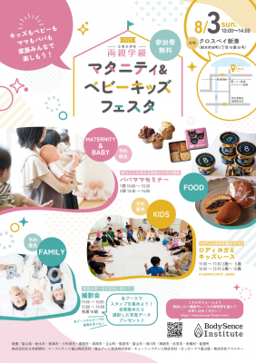 一般社団法人ボディセンス・インスティテュート(富山県富山市)は、これまで妊娠中から1歳までの親子を対象に開催してきた「企業主導型両親学級」の拡大版イベント「マタニティ&ベビーキッズフェスタ」を、2025年8月3日(日)にクロスベイ新湊(富山県射水市)にて開催いたします。