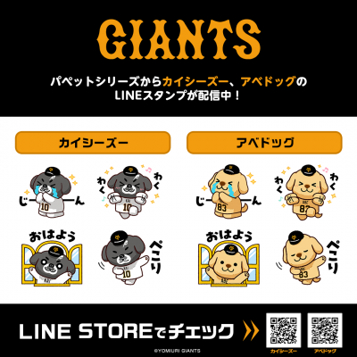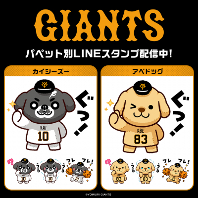 記念すべきキャラ別ver.の第7弾は、甲斐拓也選手の「カイシーズー」と、阿部慎之助監督の「アベドッグ」の2点の同時の配信となり、今回も株式会社インクルーズが描き起こした特別なデザインとなっております。