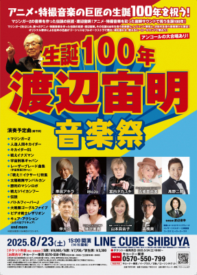 スリーシェルズは、代表の西耕一がプロデュースする「生誕100年・渡辺宙明音楽祭」(8月23日渋谷)に追加ゲストが決定したことを2025年7月18日に発表しました。