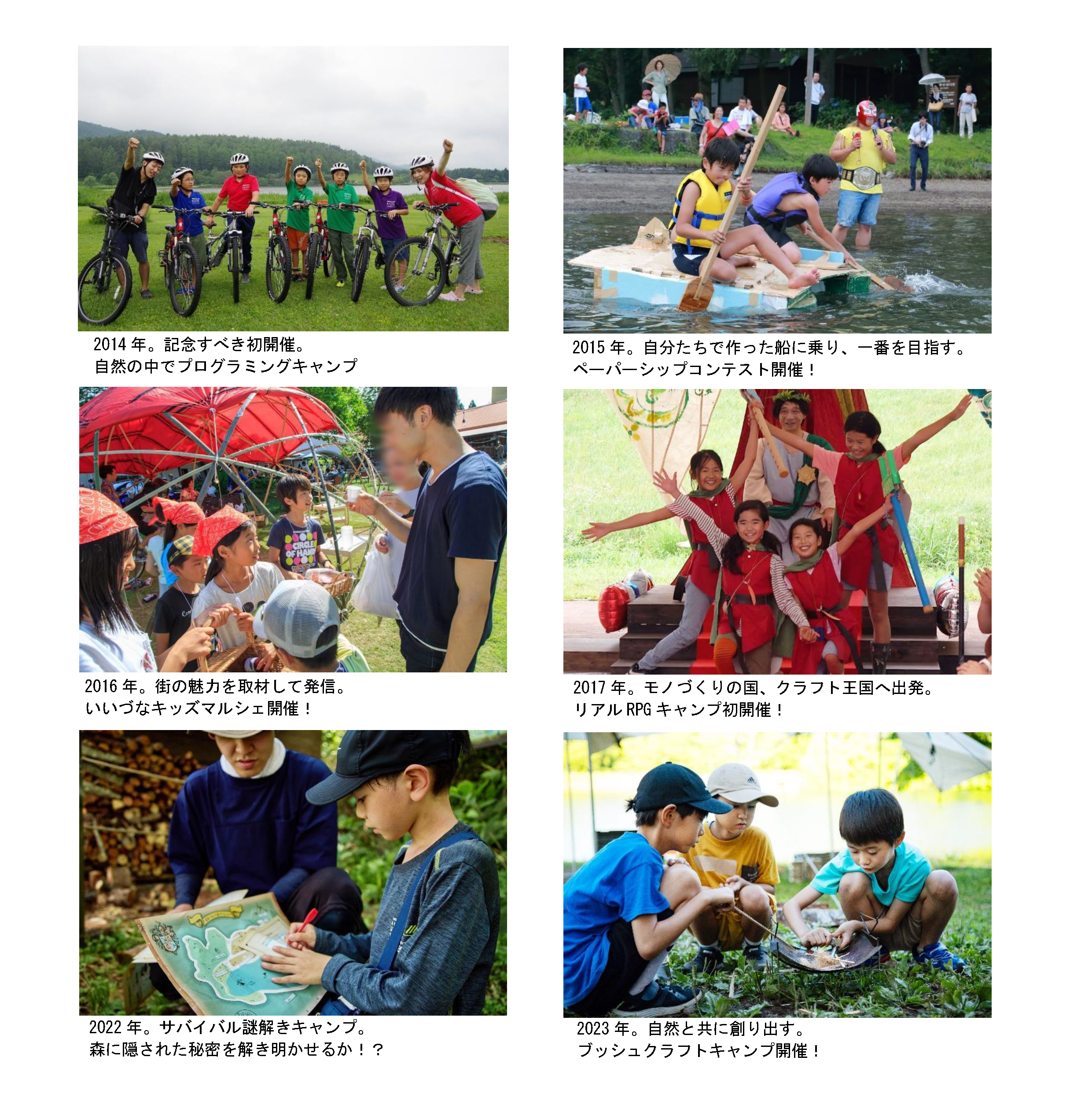 アソビズムの共育事業部が運営するクリエイティブ共育プロジェクト「未来工作ゼミ」が、2015年から毎年夏に開催しているクリエイティブサマーキャンプ「Summer Adventure Camp(サマーアドベンチャーキャンプ)」。記念すべき第10回目となる今年は『ブッシュクラフト×冒険キャンプ』をテーマに、7月31日(木)から8月3日(日)の4日間開催いたします。この夏は信州の静かな森に囲まれた異世界のような空間でドキドキ・ハラハラ夏の大冒険!自然の中を歩き回って寝床や食器は仲間と共に現地調達し、知識やひらめきだけでなく、自分たちの手で遊びや生活に必要なものを作り出して生きる力を養う、そんな体験をお届けします!ふるってご応募ください。