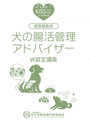 本講座のテキストは、「犬の腸活管理アドバイザー」と「犬猫アレルギー管理アドバイザー」の2冊構成となっており、「犬の腸活管理アドバイザー」では、犬の腸内環境と健康の関係性に焦点を当て、日常生活で実践できる腸活の方法やポイントを解説、食事の選び方、適切な食材の選び方・与え方、生活環境の整備、ストレス管理など、科学的な知見に基づいた情報を提供し、愛犬の健康管理と予防に活かせる知識を学ぶことができます。