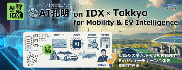 企業データとAIの利活用カンパニー、AIデータ株式会社(本社:東京都港区、代表取締役社長 佐々木隆仁、以下AIデータ社)は、自動車メーカー、電動モビリティ開発企業、部品サプライヤー、知財戦略部門向けに、EV・水素車分野における開発競争力を強化する統合ソリューション「AI孔明 on IDX × Tokkyo for Mobility & EV Intelligence」の提供を開始しました。