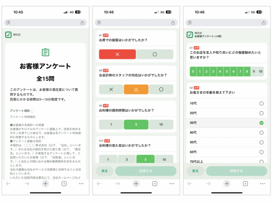 (1) アプリのダウンロード不要。その場で簡単に回答可能