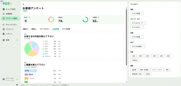 新たな「キロクルアンケート」を通じ、キロクルを導入いただいている7,000店舗はもとより今後も店舗改善につながる価値あるデータを提供できるよう努めてまいります。