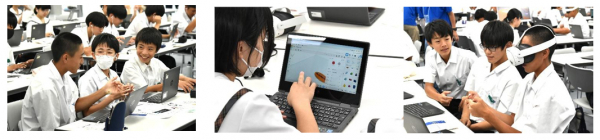 「AI活用体験」授業では、生成AIのしくみや音楽制作における著作権について学びながら、音楽生成AIを使い、学習に役立つ音楽を制作しました。活動の中でAIの可能性とリスクを説明し、AIをどう使うか自分で考えることが大事であることを伝えました。