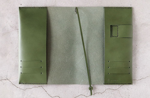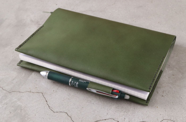 A5レザーノートカバー松葉~上質な牛本革のノートカバー~ 名入れ可能