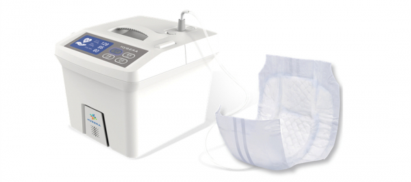 AIによる自動排尿吸引と排便検知アラーム機能を備え、従来比で介護職員の作業負担を約90%削減し、廃棄物の大幅な低減にも貢献します。