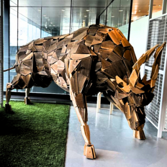 株式会社FARM8(本社:新潟県長岡市)は、エキュートエディション御茶ノ水(JR御茶ノ水駅改札外)2Fにて自社で展開している新潟体験拠点「FARM8 STAND」にて、新潟を拠点に活躍するアーティストで木の廃材から様々な動物を作る廃材再生師御・加治聖哉氏が手がけた3m以上になる巨大廃材アート作品【闘牛】を店内スペースに無料展示し、新潟での廃材活用のアップサイクルの紹介や迫力あるアートの力強さを伝えます。お茶の水エリアがアートの街として知られていますが、新潟の体験施設として御茶ノ水駅2階に期間限定OPENしているFARM8 STANDにも、新潟のアート作品や、ものづくりの背景を感じる商品が並びます。本展示は、巨大アート作品や廃材などを活用したアップサイクル表現に関心のある方に喜んでもらえる内容となっております。店舗内では、廃材と同じく日本酒製造工程で副産物で生まれる未利用食材「酒粕」をつかった乳酸菌ドリンクメニューも提供しており、同じ新潟で未利用資源に価値を吹き込む活動をテーマとして店舗内で協働しています。また店内では、新潟の日本酒12蔵の飲み比べを楽しめるSAKEPOST STAND BARも併設しており、ガラス越しに神田川や聖橋を眺めながら新潟の地酒を嗜み、アートを鑑賞するという贅沢な時間を過ごすことが可能です。FARM8 STAND へのアクセスは以下より確認ください。