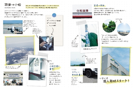 冊子全体のデザインは一般的な統合報告書とは異なり、当社に訪れた記者が取材ノートにインタビュー内容や取材で得た情報メモ・写真を集めたデザインとなっています。また、記事文も取材者や読者の疑問や感想を代弁するような表現としており、取材ノートのイメージを持たせたく手書き風のフォントを採用しています。