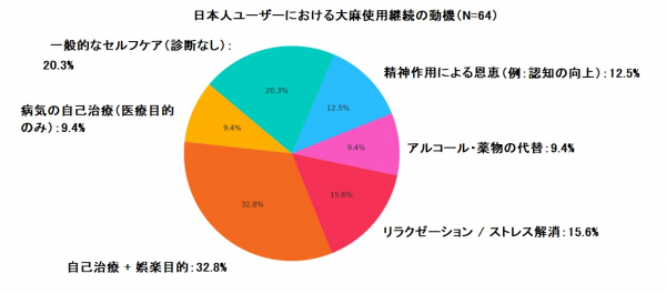 ・使用継続の動機としては、「不安・不眠・慢性痛」などの健康問題への対処や、自己治療、リラクゼーションが多く挙げられた。