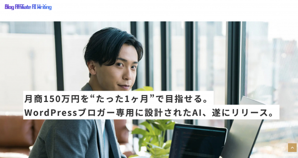 ※上記画像:「ブログ・アフィリエイト・AI・ライティング」トップページのファーストビュー