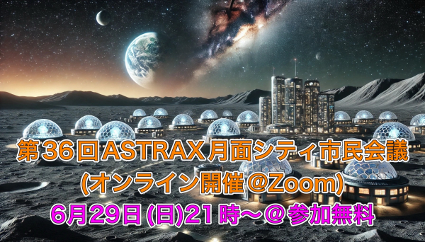 世界中の人々の夢を宇宙で実現させる民間宇宙サービスプラットフォームを提供する宇宙ベンチャー企業株式会社ASTRAX(アストラックス、以下 ASTRAX、本社:神奈川県鎌倉市、代表:代表取締役・民間宇宙飛行士 TAICHI(山崎大地))のグループメンバーが構成するASTRAX月面シティは、2025年6月29日に、ZOOMを使ったオンラインにて、第36回となるASTRAX月面シティ市民会議を開催しました。