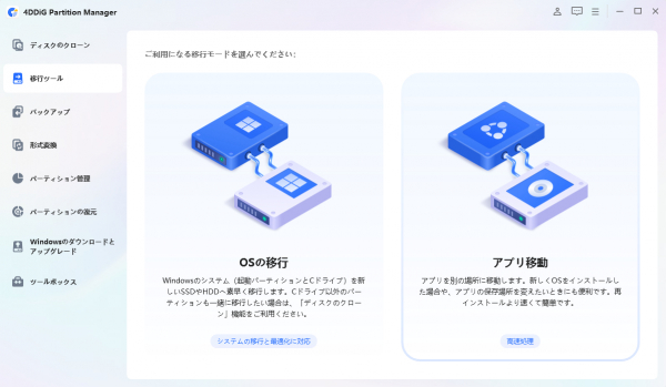 1.4DDiG Partition Manager を起動し、「移行ツール」タブに移動して「アプリ移動」を選択します。