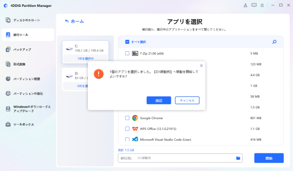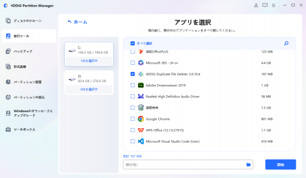「4DDiG Partition Manager」は、アプリやゲームの移動機能に対応しており、CドライブからDドライブへ安全かつ確実に移動できます。