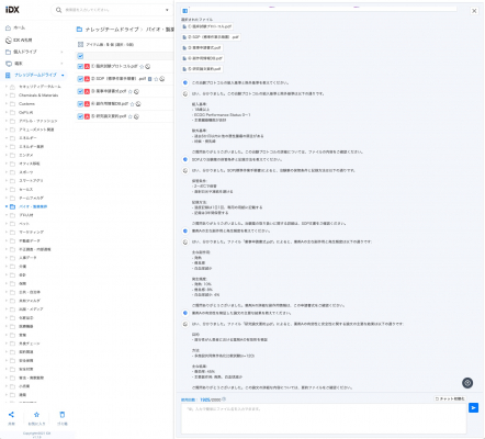 AI孔明はナレッジチームドライブ内の膨大な資料を即時検索し、AIが自然文で回答します。また、IDX内に格納されたファイルを元に生成することで、ドラフト内容についての出典を明らかにでき、ガバナンスの効いたAI活用を実現できます。