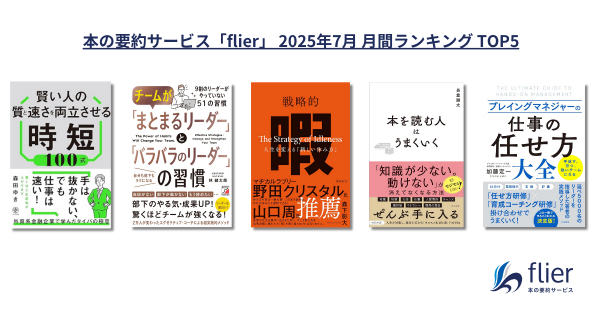 累計会員数126万人を突破した本の要約サービス「flier(フライヤー)」を運営する株式会社フライヤー(本社:東京都千代田区、代表取締役CEO 大賀康史)は、2025年7月のビジネス書月間ランキングを発表しました。