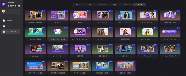 HitPaw Edimakorは、初心者から中級者までを対象に設計された、直感的な操作性と多彩なAI機能を兼ね備えたオールインワン動画編集ソフトです。AIによる自動字幕生成やAIビデオジェネレーターに加え、写真やテキストからのアニメーション生成、ジブリ風やピクセル風などの画像スタイル生成、AI音楽作曲、ノイズ除去・音声分離などの音声編集など、表現の幅を広げる最新機能を多数搭載しています。