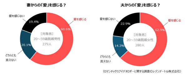 今度は、夫や妻から「愛されていると感じるか」を尋ねてみました。