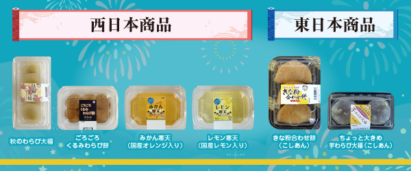 全国のスーパーマーケット様を中心に、皆様に『「ちょっと食べる」喜び』を毎日お届けしている和菓子専科・明日香野から新商品のご案内です。2025年8月1日から販売を開始する新商品と、西日本・東日本におけるこの時期一押しの商品をご案内いたします。