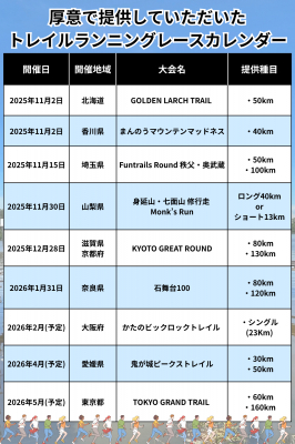 <出走権を提供いただいた大会(敬称略、開催日順)> ※カッコ内は提供種目。