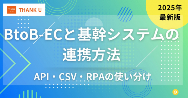 2025年8月5日、株式会社サンクユー(本社:東京都品川区、代表取締役社長:堀川治、以下「サンクユー」)は、BtoB-ECサイトと既存の基幹システムを効果的に連携させるための手法を解説したコラム「BtoB-ECと基幹システムの連携方法|API・CSV・RPAの使い分け【2025年最新版】」を公開いたしました。