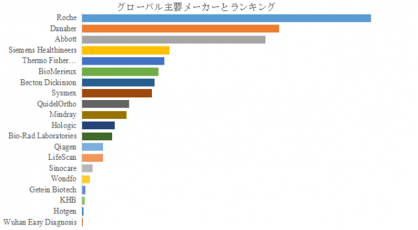 LP Informationのトップ企業研究センターによると、体外診断用医療機器の世界的な主要製造業者には、Roche、Danaher、Abbott、Siemens Healthineers、Thermo Fisher Scientific、BioMerieux、Becton Dickinson、Sysmex、QuidelOrtho、Mindrayなどが含まれている。2024年、世界のトップ5企業は売上の観点から約51.0%の市場シェアを持っていた。