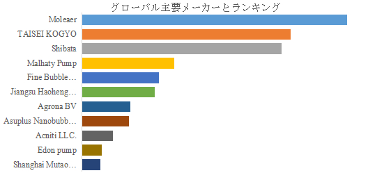 LP Informationのトップ企業研究センターによると、微細気泡発生装置の世界的な主要製造業者には、Moleaer、TAISEI KOGYO、Shibata、Malhaty Pump、Fine Bubble Technologies、Jiangsu Haoheng Nano Technology、Agrona BV、Asuplus Nanobubble Technology、Acniti LLC.、Edon pumpなどが含まれている。2024年、世界のトップ5企業は売上の観点から約27.0%の市場シェアを持っていた。