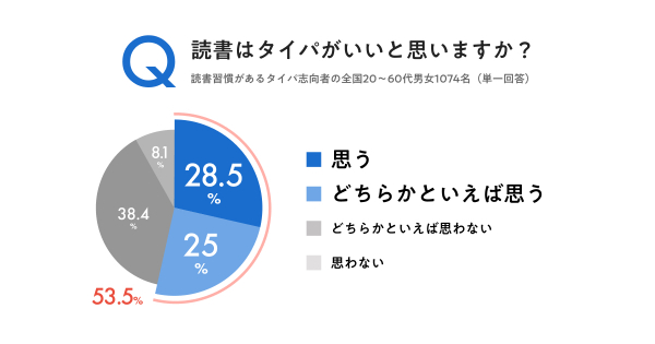 ・読書習慣があるタイパ志向者の半数以上が「読書はタイパがいい」と感じていることが明らかになりました。