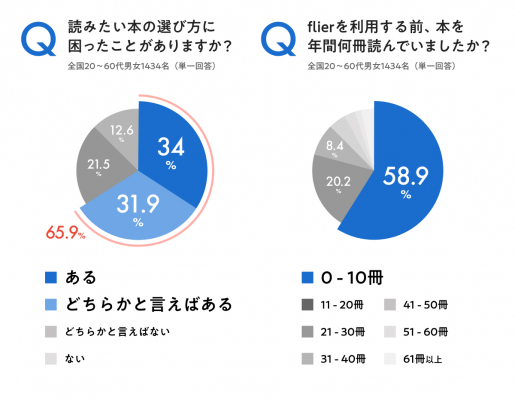 ・アンケートの回答者のうち、9割以上がflierは選書に役立っていると回答。7割以上がflierを利用することで読書量が増えたことが明らかになりました。