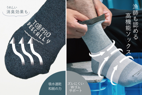 漁師も認める吸湿速乾、消臭防止の高機能パイルソックス