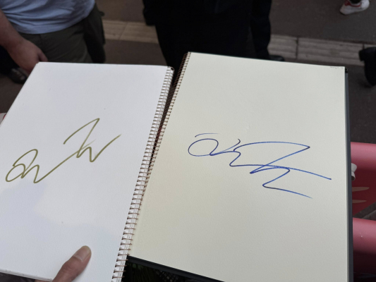 余談ではあるが、友人が熱烈なタランティーノファンであることもあり、サインをいただいたがペンを渡す際に